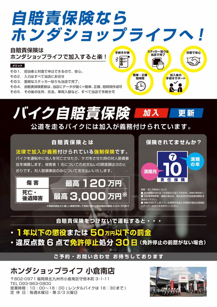 自賠責保険ならホンダショップライフへ